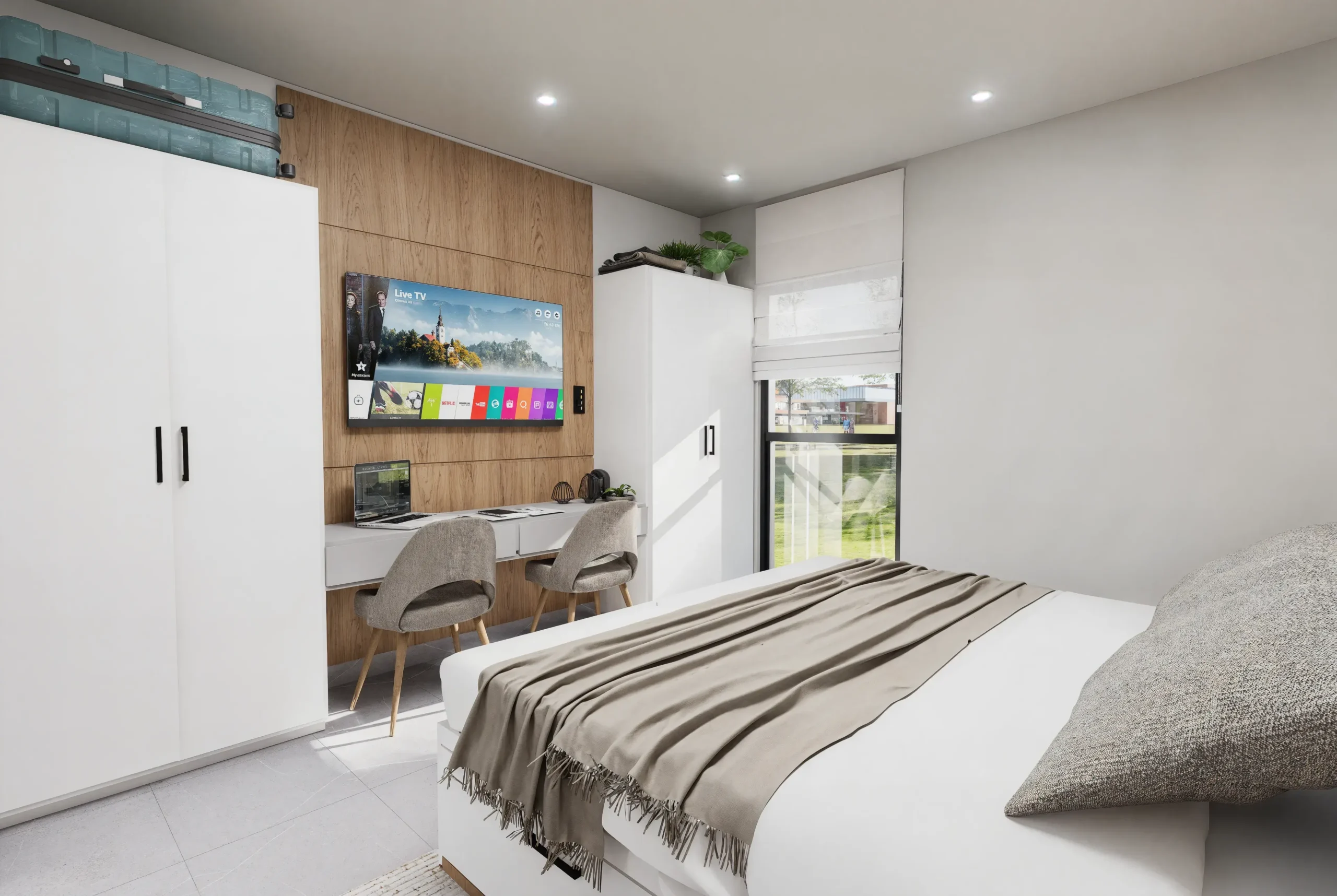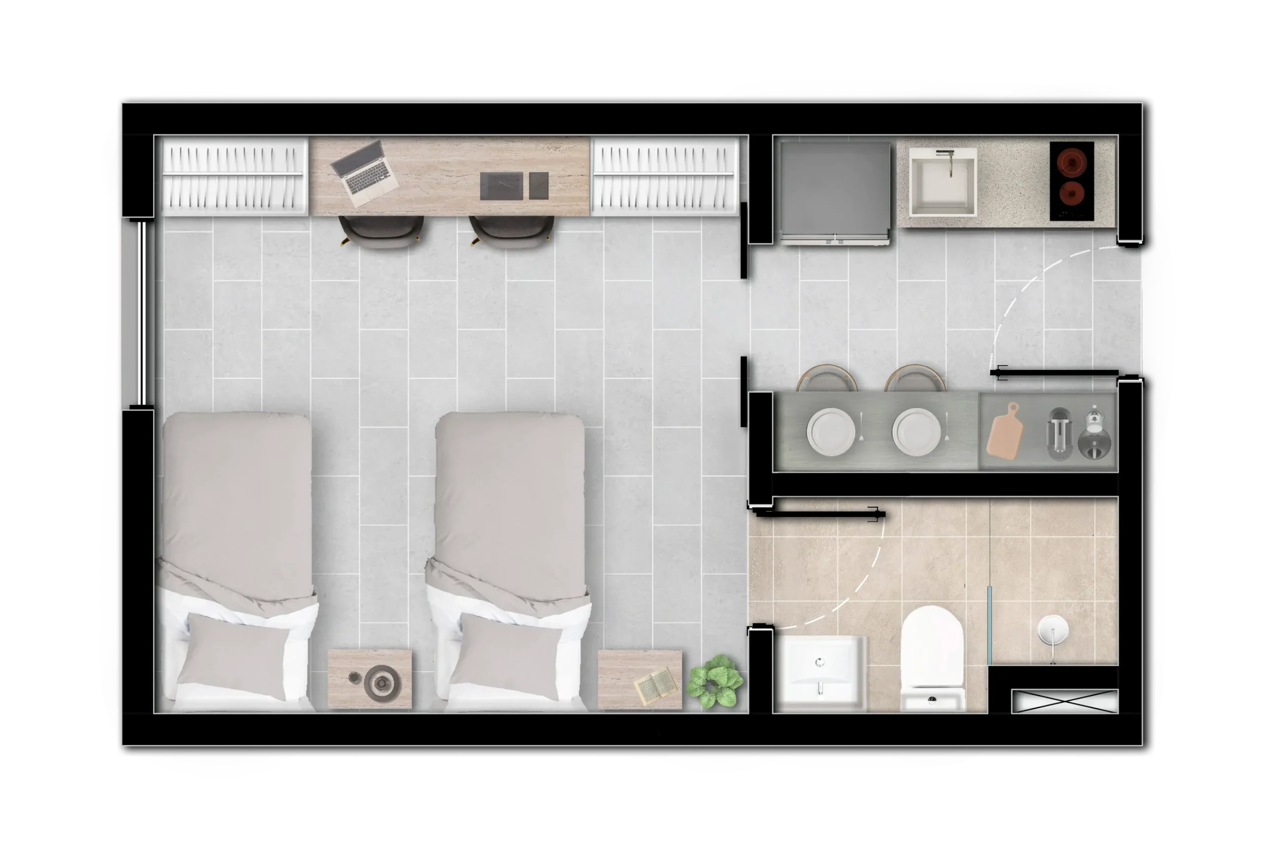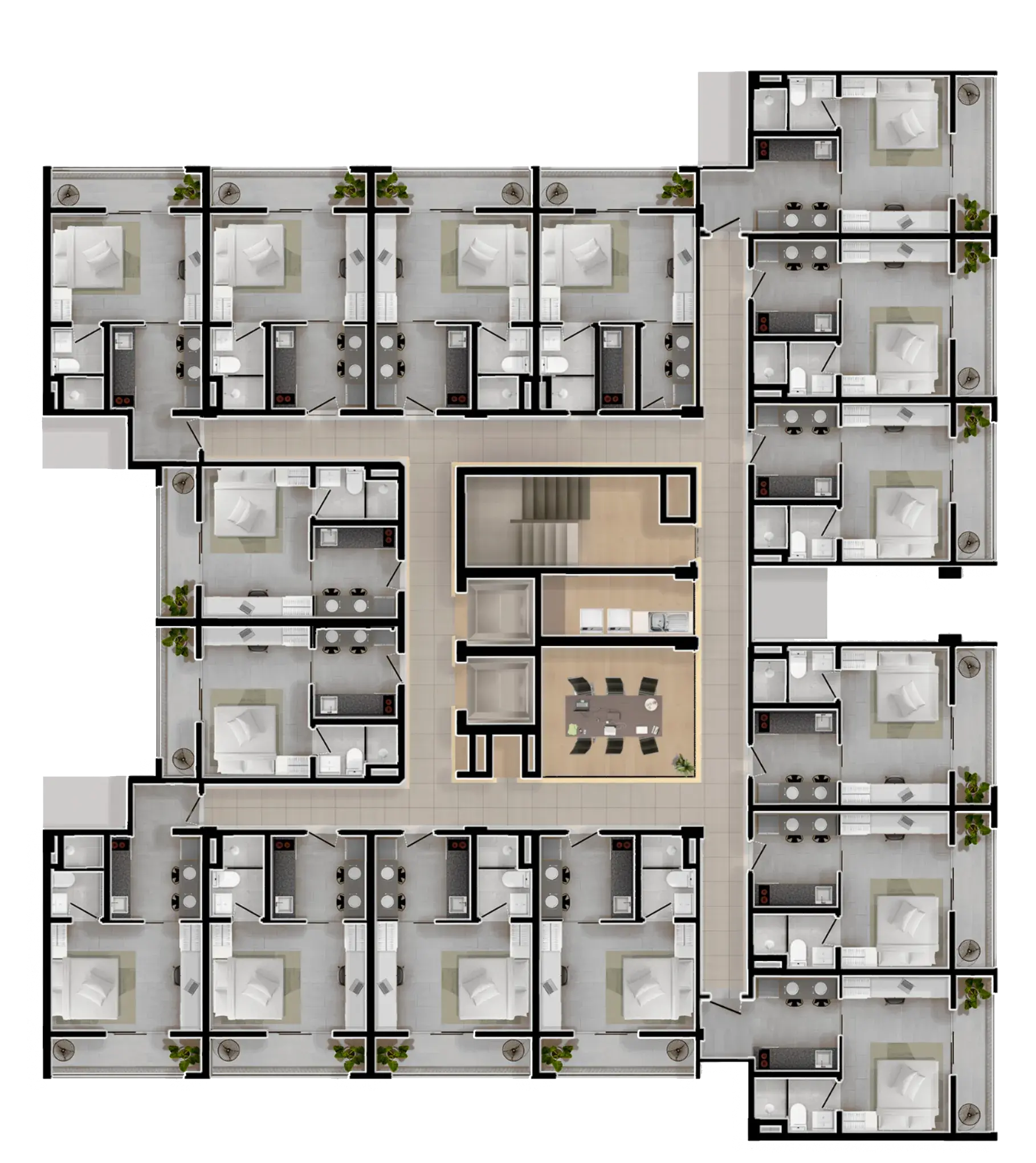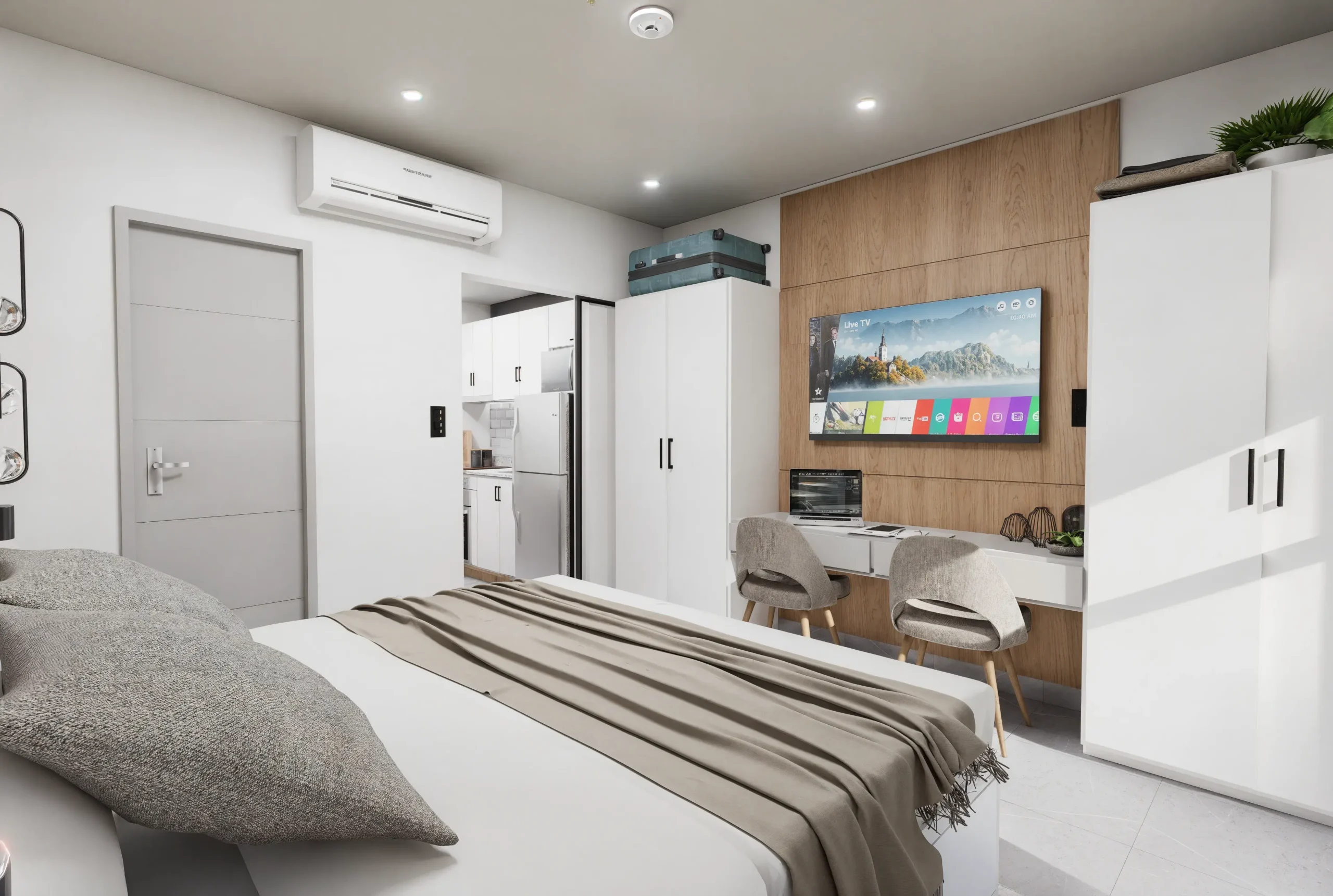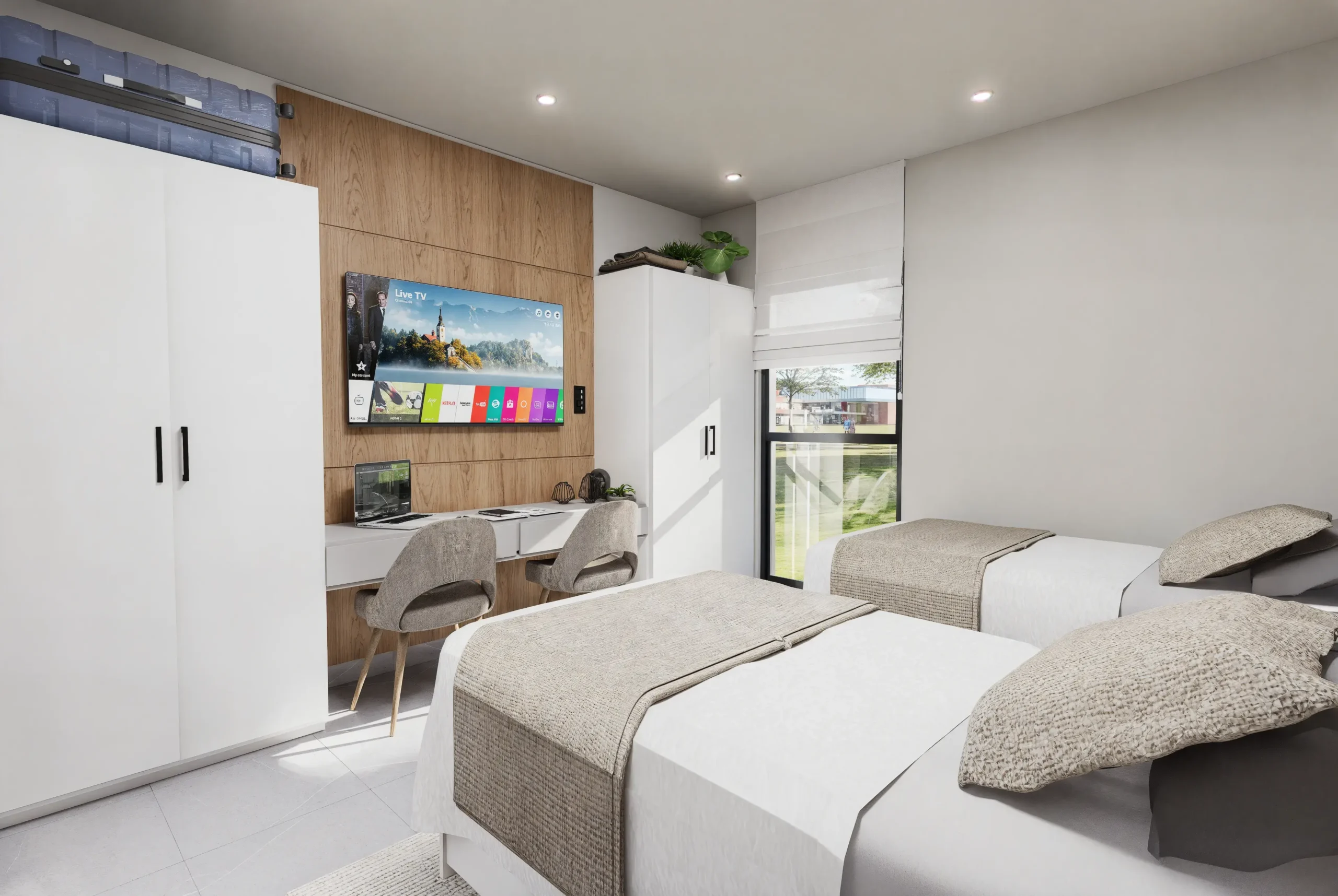 Somos especialistas en desarrollos inmobiliarios para estudiantes universitarios en Paraguay. Creamos espacios diseñados para que la vida estudiantil sea una experiencia única, combinando privacidad con áreas de integración social.