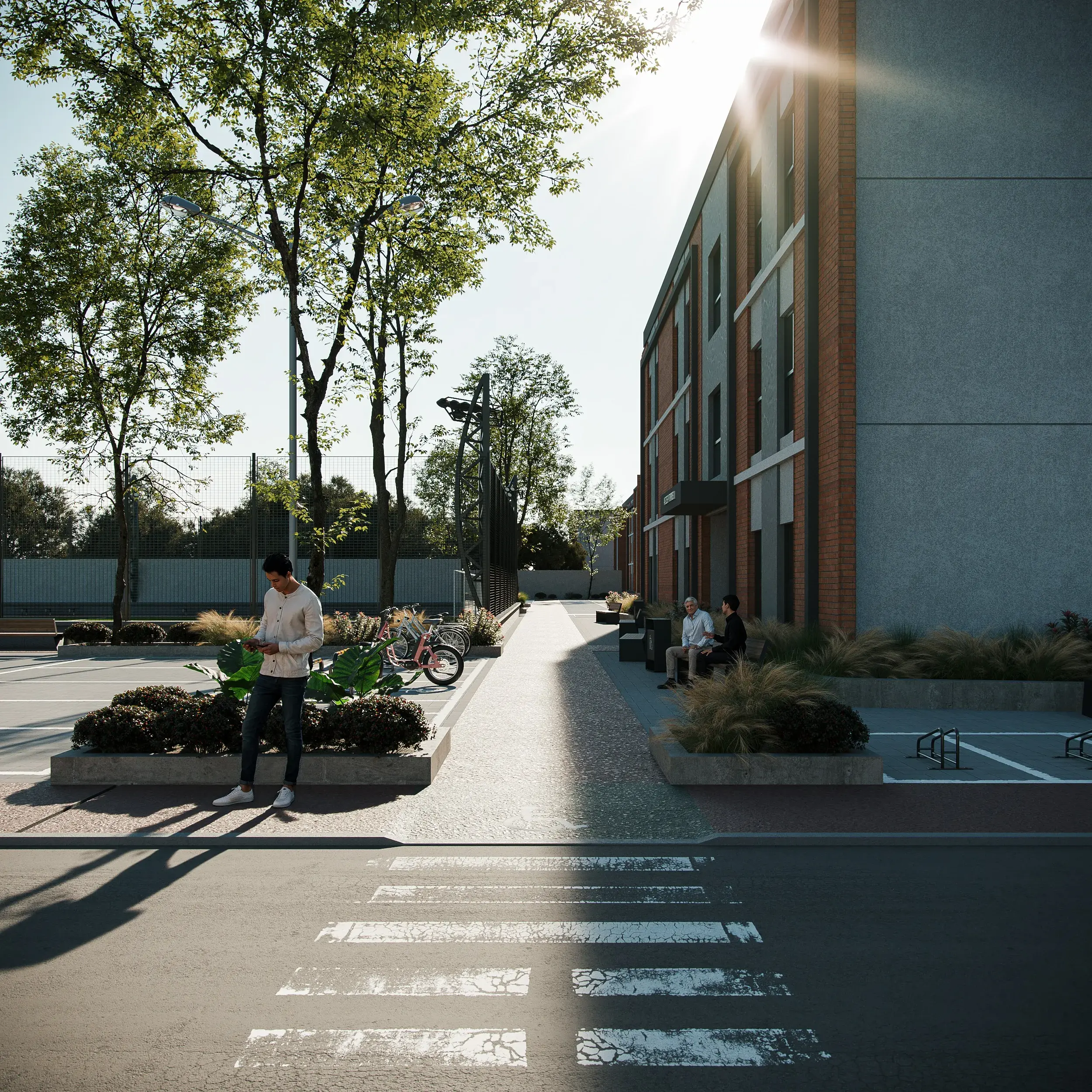 Se ubica en cercanías a una gran plaza dotada de equipamiento público, servicios, supermercados, gimnasios y zonas para hacer deportes al aire libre.